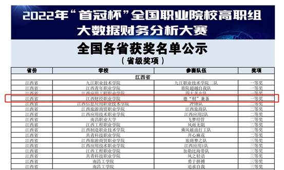 公司代表队荣获“2022年‘首冠杯’全国职业院校高职组大数据财务分析大赛”江西省一等奖