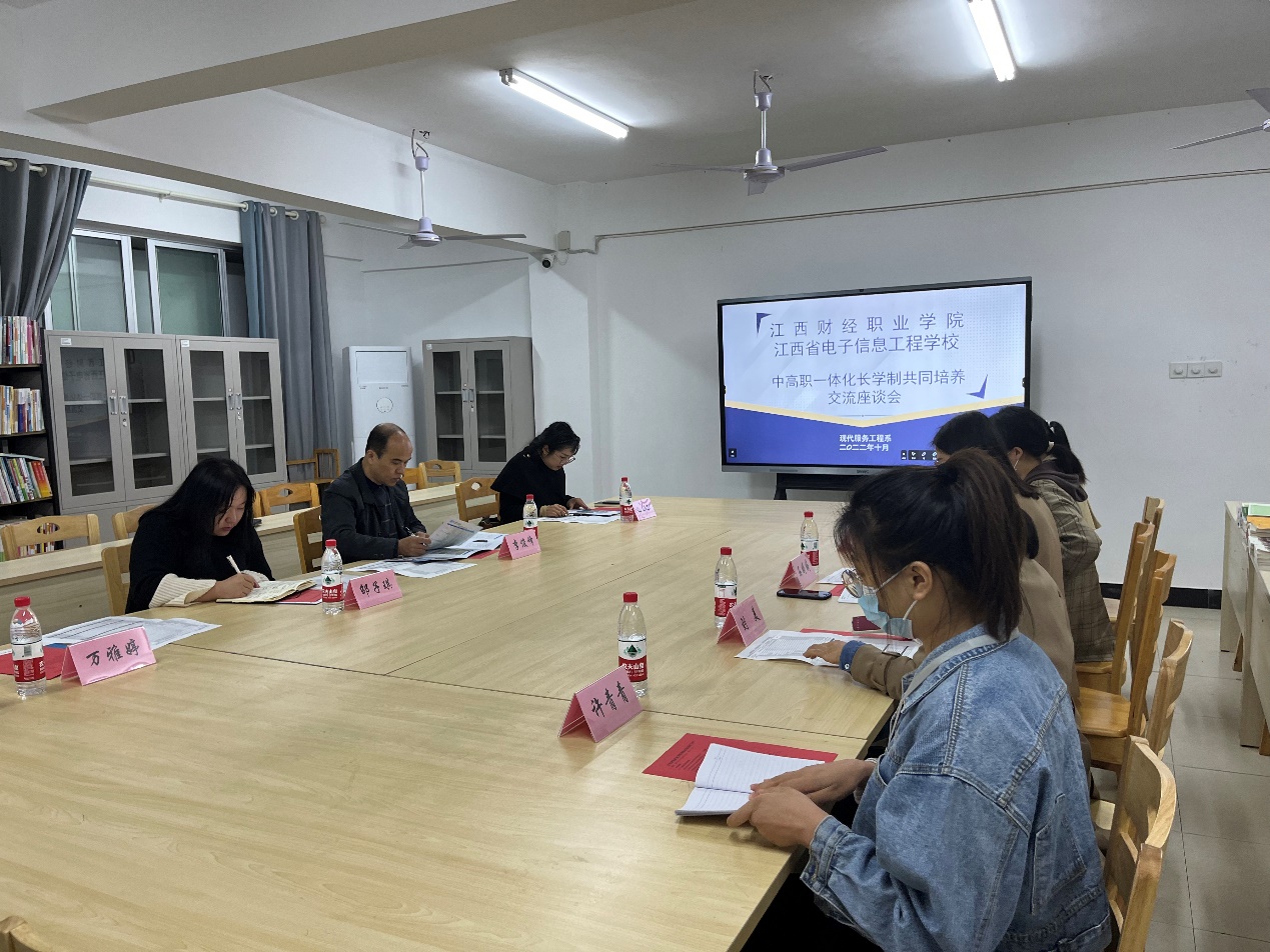为积极推进中高职一体化长学制职业培养项目,进一步增进与中职院校的沟通与交流,10月28日,365best体育官网登录副经理李俊峰、统计核算教研室主任邵子琪、骨干教师孙小丽及万亚婷一行四人前往江西省电子信息工程公司就大数据与会计(业财数智化融合)专业中高职一体化长学制人才培养情况进行交流研讨。
