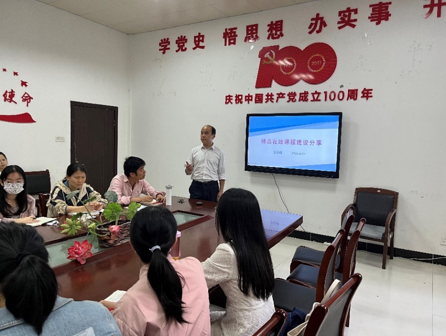 5月24日,李俊峰副经理就精品在线课程建设经验进行了分享。首先李俊峰副经理对在线课程建设的历史演变进行了介绍,并对已建成的课程进行了分享。然后从精品在线课程的建设路径、团队建设、课程运行和维护、制作公司的选择以及申报书的撰写共五个方面系统地进行了讲解。最后对建设过程中可能遇到的困难,结合其自身丰富的经验给教师们提出了宝贵的参考意见。