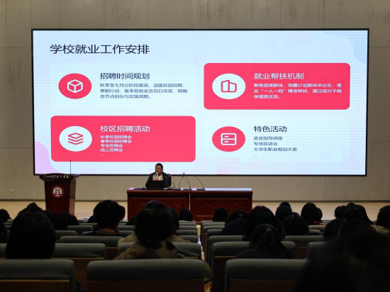 10月22日下午,365best体育官网登录在一号报告厅开展2026届毕业班就业动员暨就业指导讲座,党总支副书记龚威、全体毕业班班主任及2026届毕业生参会。