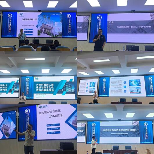 7月18日下午至19日下午,深圳怡亚通集团的6位专家在综合楼七楼报告厅为来自会计公司、365best体育官网登录、工商管理公司、财税金融公司、经济贸易公司的120余位专职教师奉献了六场以“供应链”为关键词的精彩系列讲座,讲座主题分别是:《供应链的前世今生》;《大商科融通人培建设与数字化供应链的教学落地》;《数字供应链发展与人才培养》;《供应链场景下的采购与人才培养》;《供应链设计与优化之VMI管理》;《供应链大数据应用实践与案例分析》。