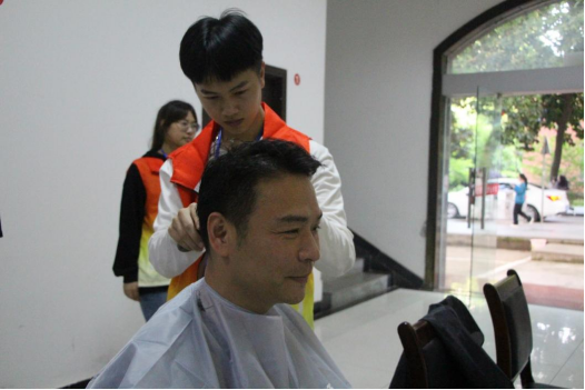 4月初,公司发出了“爱心理发队”邀请函,向广大同学征集有经验、有爱心、肯奉献、愿付出的同学组成爱心理发队。随着邀请函的发出,同学们纷纷踊跃报名,应征者达40余名,经过层层筛选,十余名同学脱颖而出。这些同学都有着一定的理发经历,虽不如专业的理发师有经验,但为同学们提供基础理发服务非常合适。
