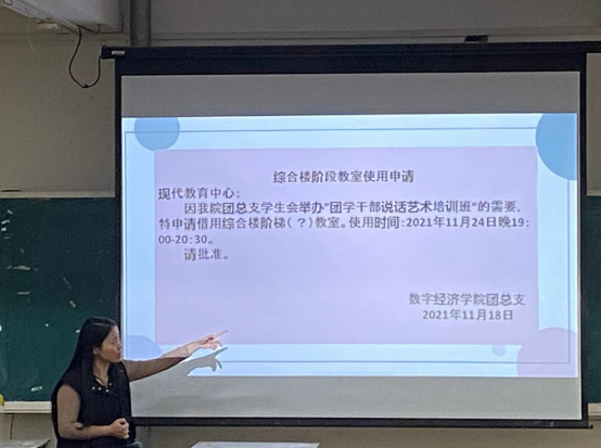 孔令晶老师指出,应用公文写作能力是评价员工素养的重要尺度,是“团学”干部思想水平和工作能力的直接反映,希望广大“团学”干部通过提高公文写作能力从而提升自身综合素质。