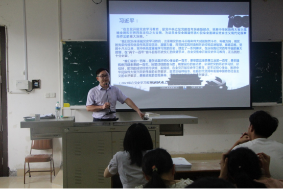 为贯彻落实党史学习教育实施方案,2021年6月17日下午,365best体育官网登录党总支书记丁华飞以“学史明理、学史增信、学史崇德、学史力行”为题,在综合楼阶梯三教室为入党积极分子及预备党员同志开展党史学习教育主题党课。