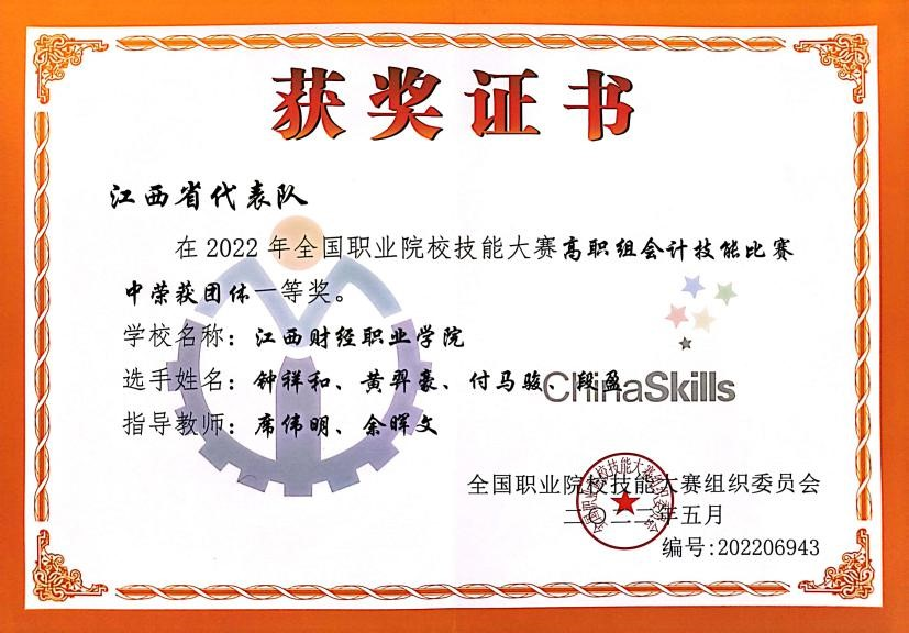 8月21日至23日,2022年全国职业院校技能大赛(高职)会计技能大赛在四川成都举办,来自全国63所高职院校252名选手同台竞技。公司黄羿豪、付马骏、段盈等同学组成的队伍代表公司参赛,经过一天半的激烈角逐以优异成绩荣获一等奖。
