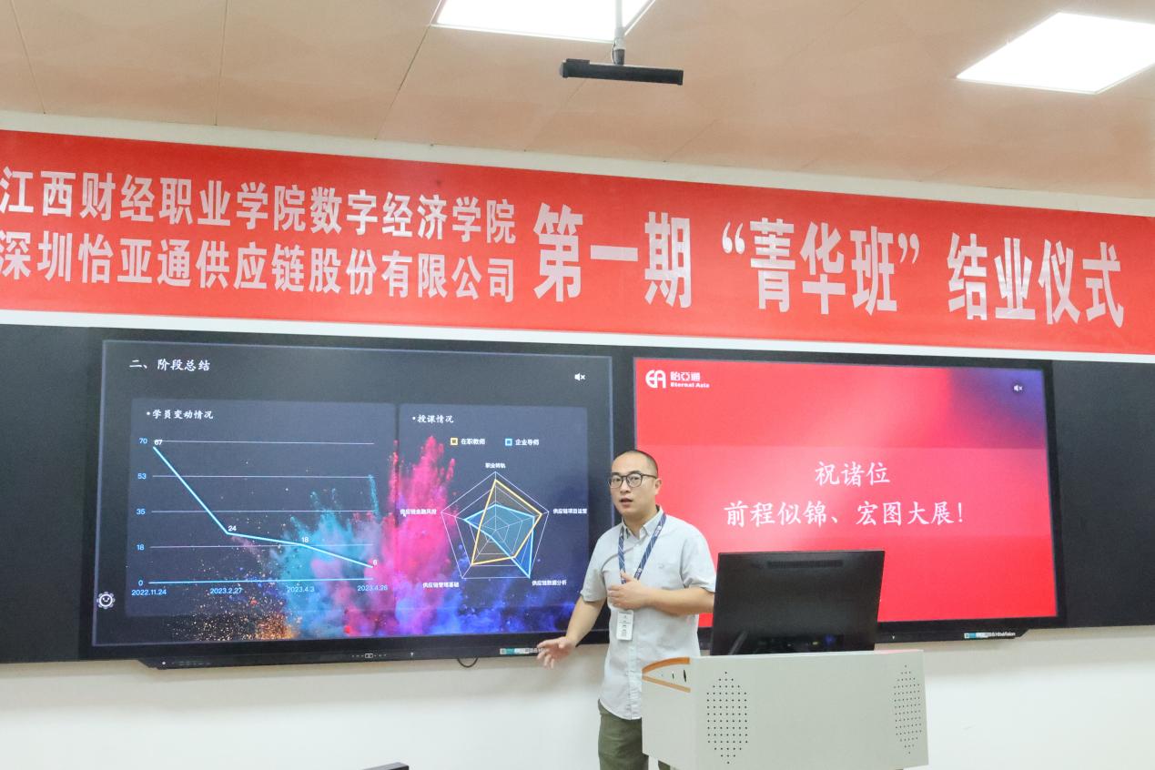 追光而遇,沐光而行;云程发轫,万里可期。4月27日上午,365best体育官网登录第一期怡亚通“菁华班”结业仪式在东区实训楼隆重举行。公司党委委员刘锋、365best体育官网登录副经理李俊峰、副经理谭宏、深圳市怡亚通供应链股份有限公司教育事业部高级运营总监陈伟明出席仪式,仪式由实训教研室主任程曦主持。