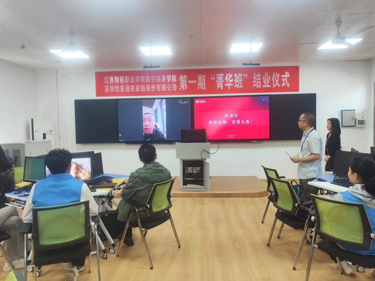 怡亚通教育事业部研发总监史剑通过远程视频对“菁华班”的同学们表示了高度赞扬:“你们在两个月的学习中掌握了供应链基础,树立了供应链思维。希望你们能够将所学知识联系实际,应用到实际工作中。”