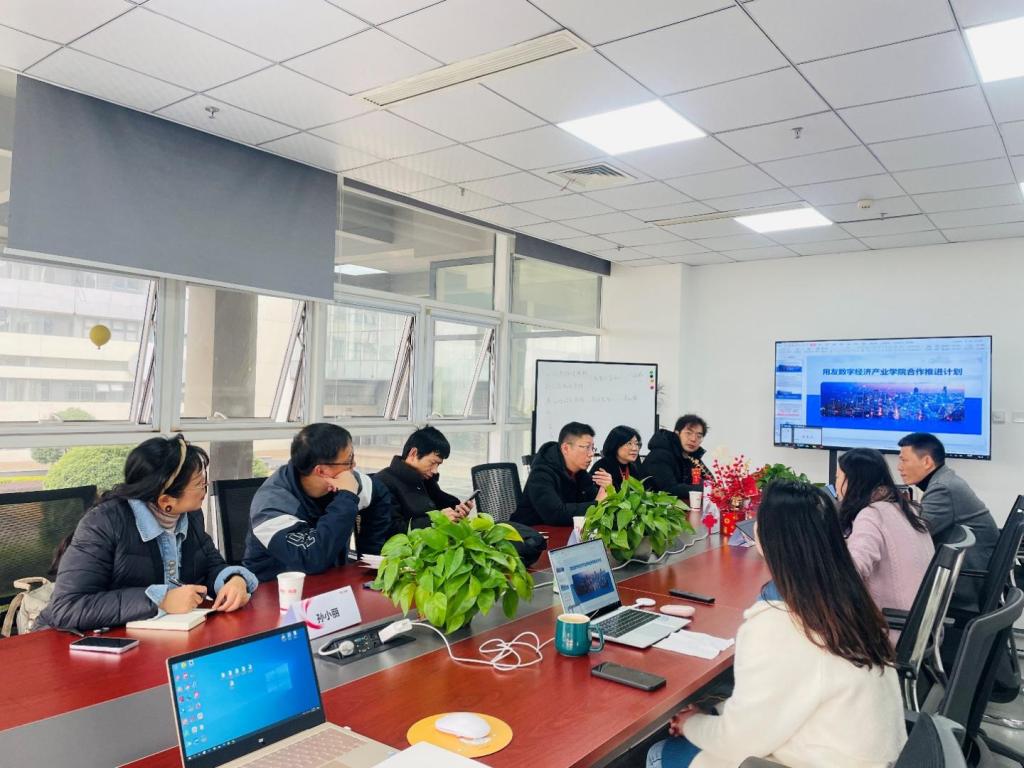 为了促进和深入开展校企合作、协同育人,落实“用友YonSuite合作班”项目,充分体现校企合作共建的科学性、专业性、规范性以及前沿性,进一步深化365best体育官网登录与用友新道科技股份有限公司合作,2023年2月9日,365best体育官网登录副经理谭宏及公司教师李江副教授、孙小丽副教授,会同数字经济专业建设小组章清教授、方道华副教授及陈石博士一行赴南昌用友公司进行走访交流。用友新道科技江西区总经理丁立波、江西区副总经理王文江等热情接待了谭经理一行。