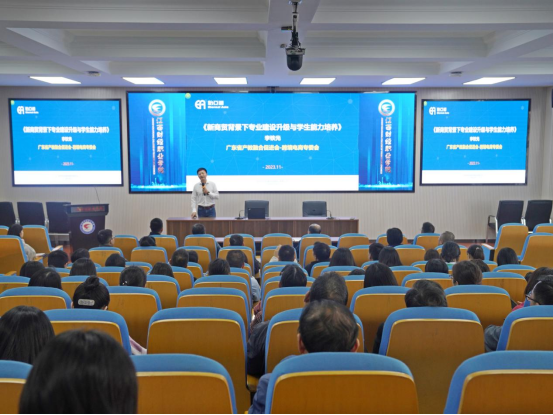 李铁光总经理首先于11月20日下午在湖滨校区综合楼7楼报告厅做了“新商科背景下专业建设升级与员工能力培养”的主题讲座。他在讲座中介绍了产业发展趋势和国内外供应链的发展阶段,结合具体案例分析了数字化推动流通业商业逻辑重构的场景,回顾了职业教育财经商贸类专业的调整历程,并深刻剖析了当前新商贸背景下职业院校专业升级的必要性,为公司专业建设提供了重要参考。