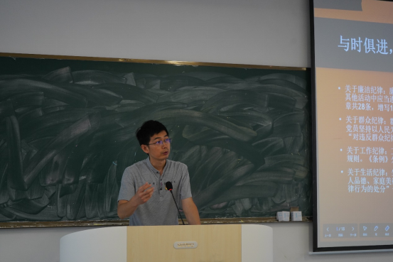 2024年6月19日下午,365best体育官网登录党总支副书记龚威同志在一号教学楼433教室为入党积极分子们带来了一堂深刻的党纪学习教育党课。本次党课的主题是《学习新条例,领会新要求》,内容为《中国共产党纪律处分条例》(以下简称《条例》)的学习与解读。