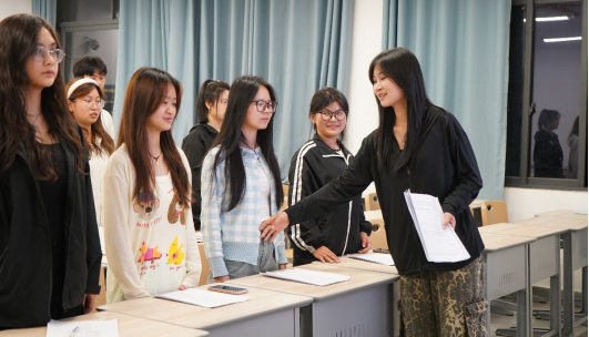 活动现场,陈绮丽导师以独特的教学模式,围绕发声技巧、口语表达训练及话题探讨展开教学。她通过深入浅出的讲解,带领同学们掌握清晰流畅、富有感染力的表达方法。在仪态肢体语言与互动技巧教学环节,陈绮丽导师亲自示范,指导同学们进行实践练习,帮助大家克服舞台紧张感,打造自信大方的演讲形象,现场学习氛围持续升温。