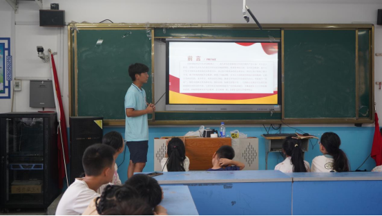 随后,实践队队员郑景红以“我和我的祖国”为主题,向同学们普及了我国的国旗、国歌、国徽相关知识,还向同学们介绍了我国历史上的几位革命英雄,通过他们的英勇革命事迹,深刻感受到他们为了民族独立、人民解放和国家富强所付出的巨大牺牲和不懈努力,更加体会到现在幸福生活的来之不易。