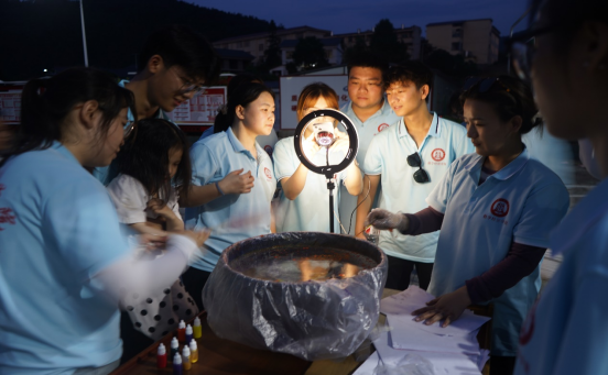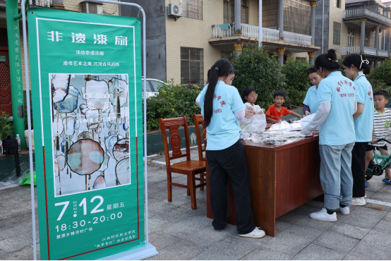 当晚,实践队员们在复原乡雅洋村广场举办了非遗漆扇活动,旨在弘扬和传承漆扇这一古老的手工技艺,推动漆扇文化的发展和创新。