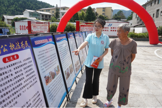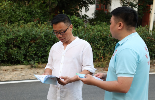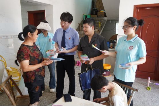 7月11日上午,实践队与修水县政法系统联合开展“与法同行,共建和谐社会”宣传活动。在当地村干部和政法系统工作人员的带领下,走进各家各户,向居民普及法律知识。