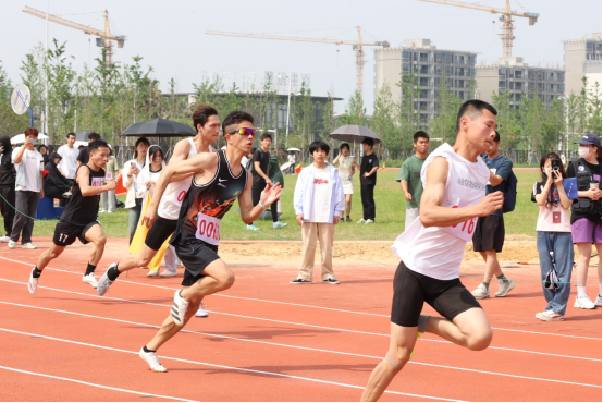 在田径赛场上,运动员们如同离弦的箭一般冲向终点。他们奋力疾跑,汗水洒在跑道上,观众们为他们加油助威,现场气氛异常热烈。