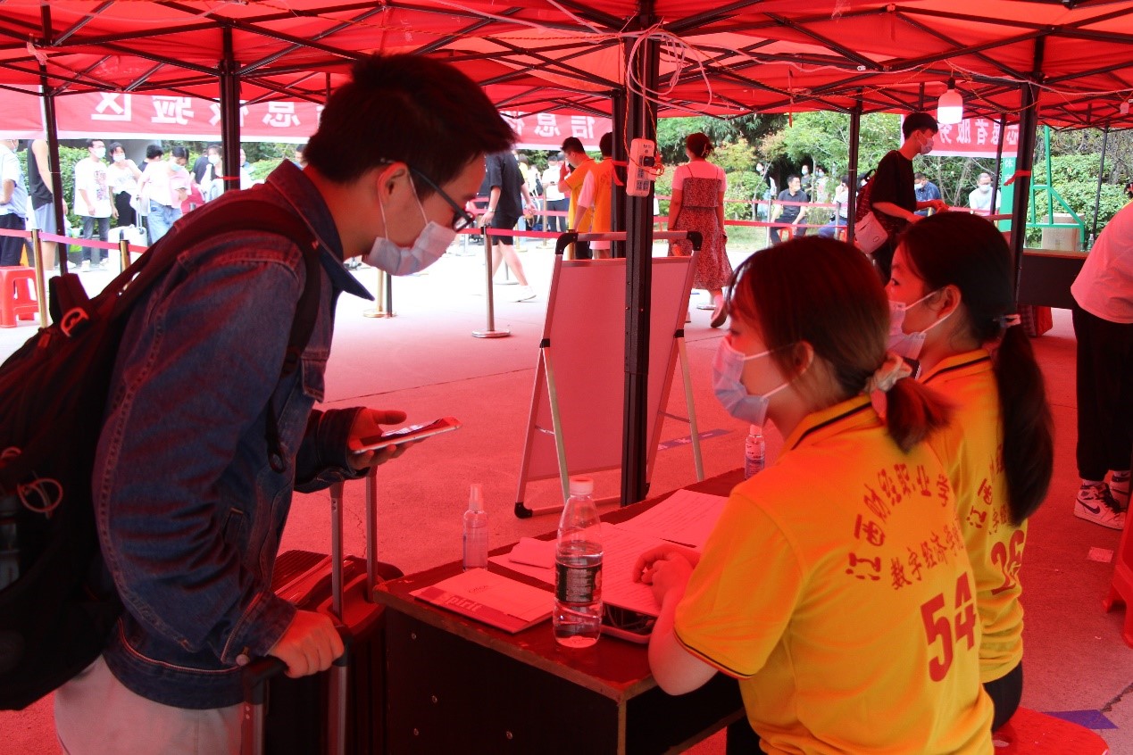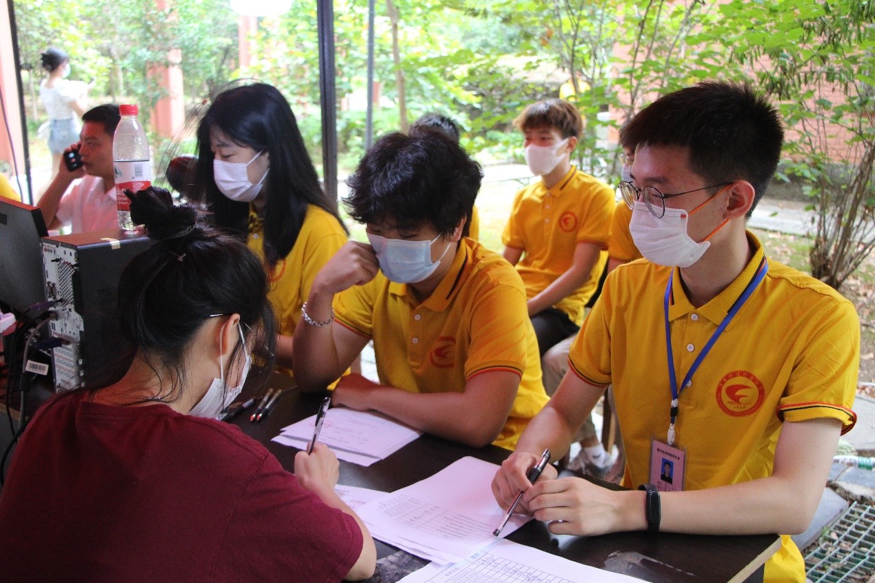 在疫情防控的当下,公司迎新工作遵照公司疫情防控政策执行。新生由东大门进入,一位位身穿黄色T恤的志愿者,在信息核验区仔细核对新生的赣通码“绿码”、通信大数据行程“绿码”以及到校前48小时内核酸检测阴性报告证明后有序进入校园,再由志愿者引进迎新台。通过志愿者的介绍,让新生对公司有了一个初步的了解。
